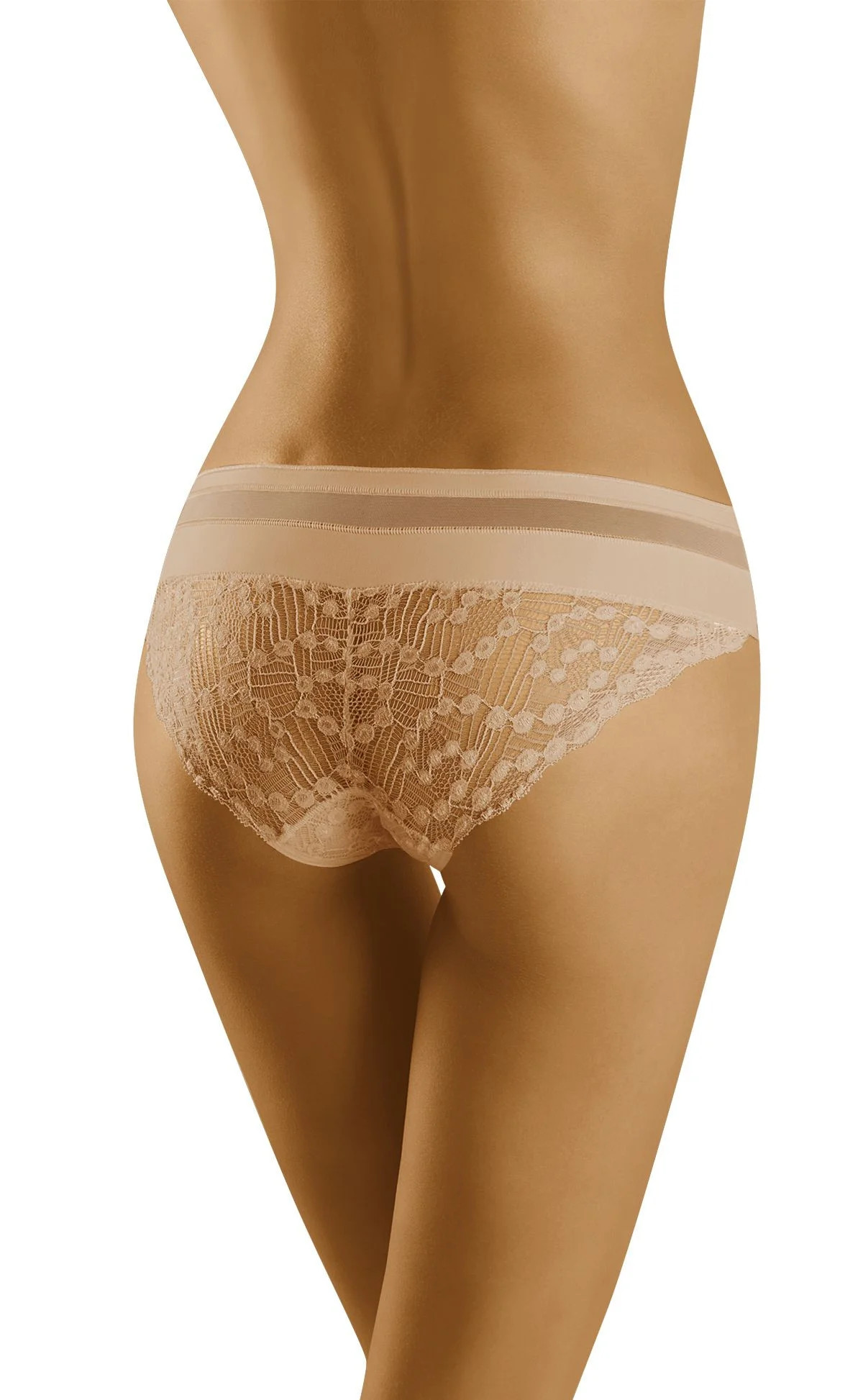 Pohodlné kalhotky z ažurové, zdobené krajky. S širším elastickým pasem. Krásné, ženské a vysoce kvalitní. Květinové, ažurové vzory s jemným průsvitným efektem. Složení: 83 % polyamid, 17 % elastan.