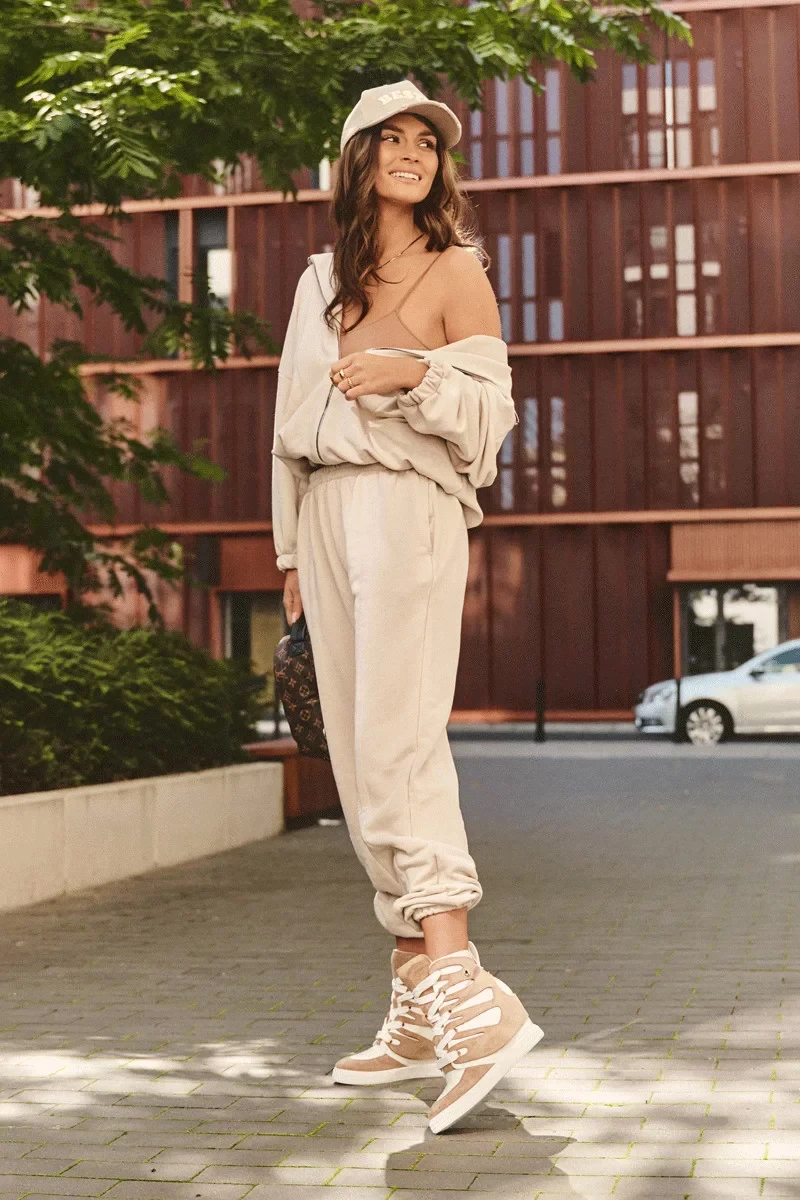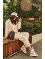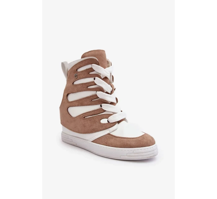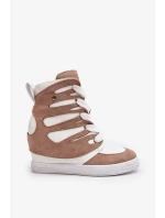 Béžové kožené kotníkové boty na klínku Amria
