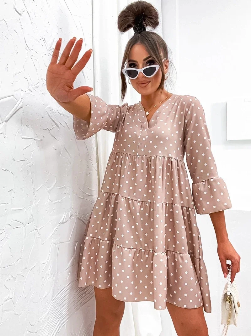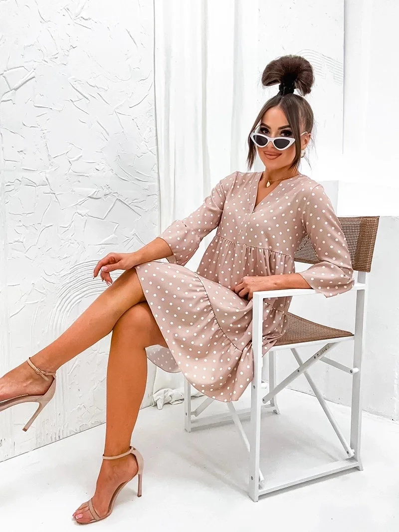 Přidání recenze k Béžové puntíkované šaty s volánky model 19686340 - Moon