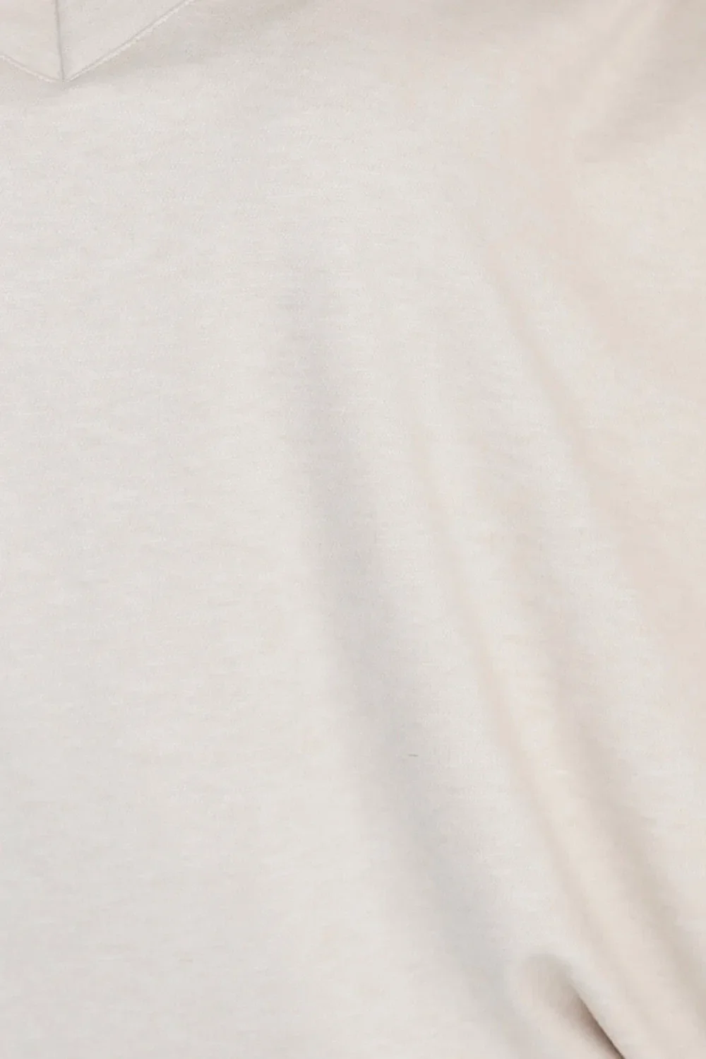 Šaty jsou vyrobené z pružného svetříkového materiálu v béžové barvě, který se dokonale přizpůsobuje postavě a zároveň nabízí pohodlí a styl. Tento model s výstřihem můžete nosit jak obyčejně, tak jako blůzu či mikinu, což umožňuje různorodé stylizace. Šaty jsou polským výrobkem, který v sobě spojuje pohodlí s elegancí a osvědčí se jak při všednodenním nošení, tak i při formálnějších příležitostech.