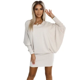 Přidání recenze k Béžové teplé dámské netopýří šaty s výstřihem model 20614722 - numoco