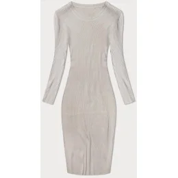 Béžové tužkové šaty s dlouhými rukávy model 20082463 - NEW COLLECTION