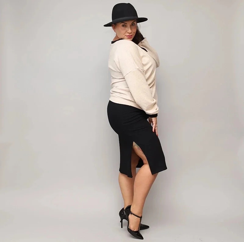 Přidání recenze k Béžovo-černé šaty s úpletovou blůzou (682)