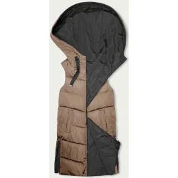 Béžovo-grafitová dlouhá dámská oboustranná vesta (B8248-12)