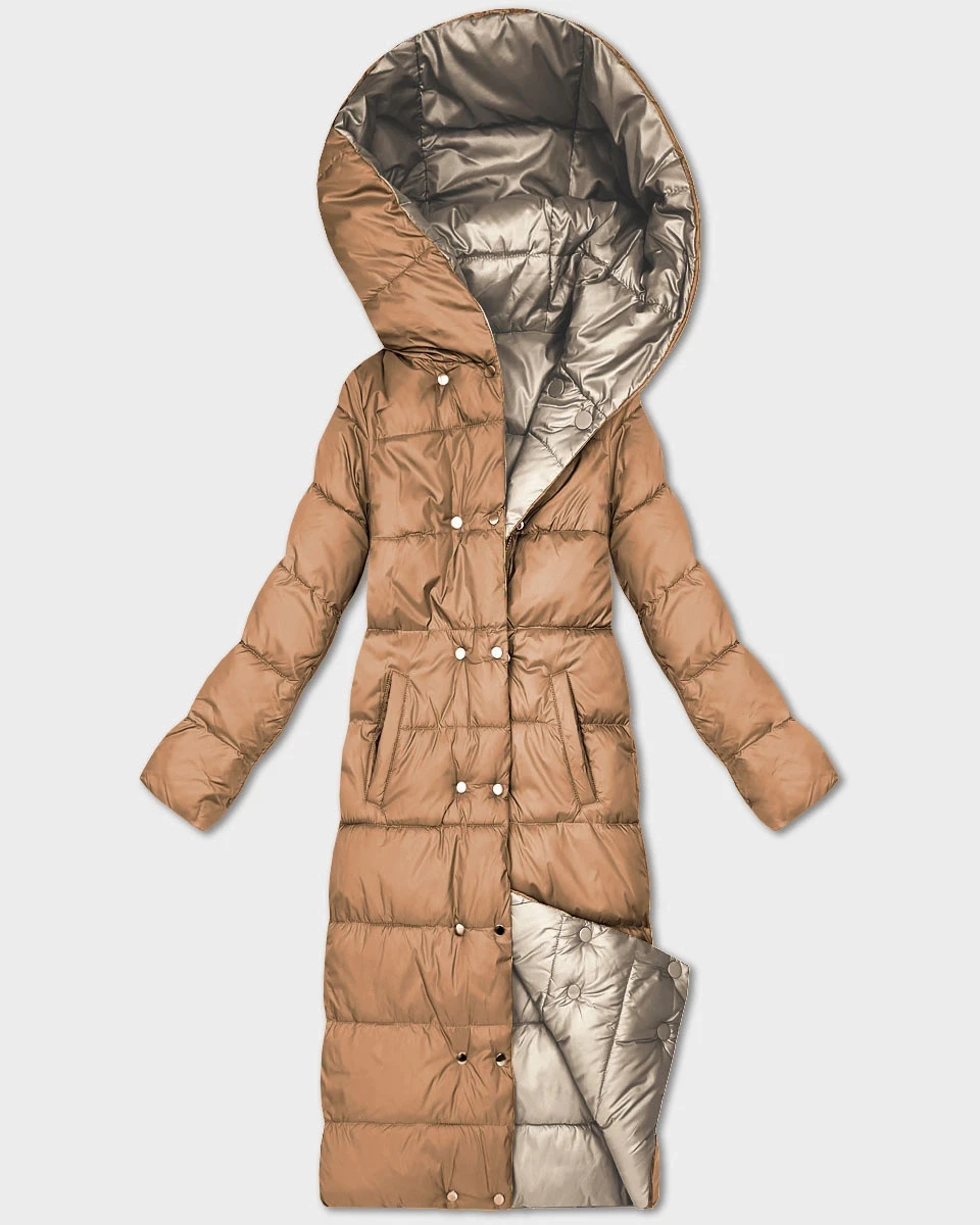 Béžovo-hnědá oboustranná zimní bunda v délce ke kolenům Minority (P3-6017-62+301)