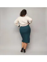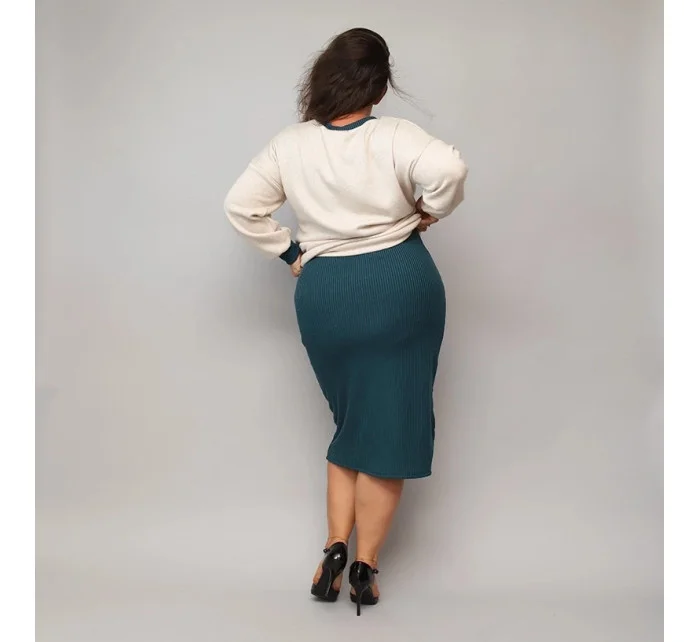 Béžovo-tmavě zelené šaty s úpletovou blůzou (682)
