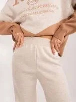 Kalhoty jsou vyrobené z pružného materiálu. V pase modelu je guma. Ve spodní části nohavic jsou rozparky.
