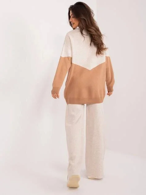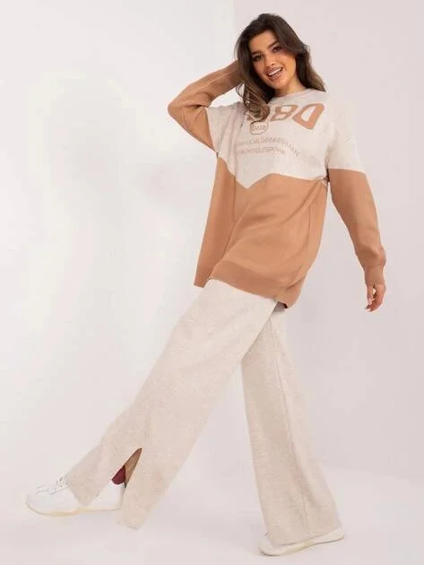 Béžovo/velbloudí dámský dvoudílný komplet s volným svetrem (1497)
