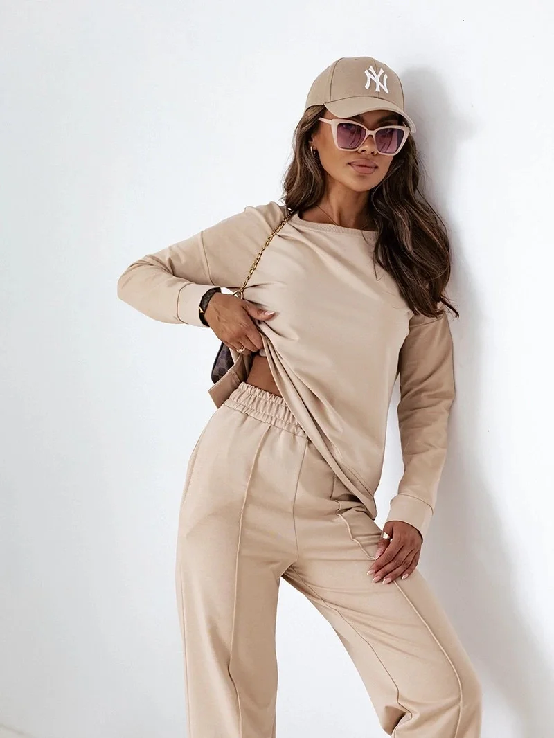 Béžový bavlněný komplet blůza a kalhoty model 19686368 - Moon