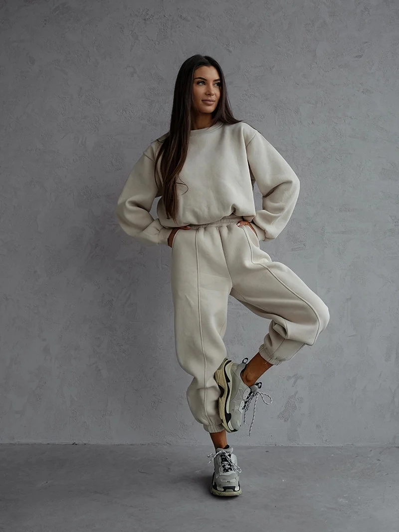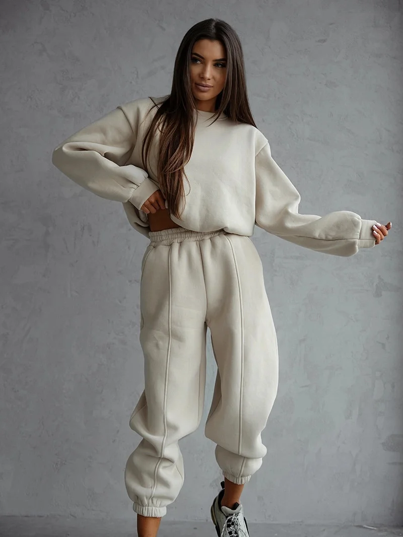 Přidání recenze k Béžový dámský bavlněný teplákový komplet s krátkou mikinou (82160)