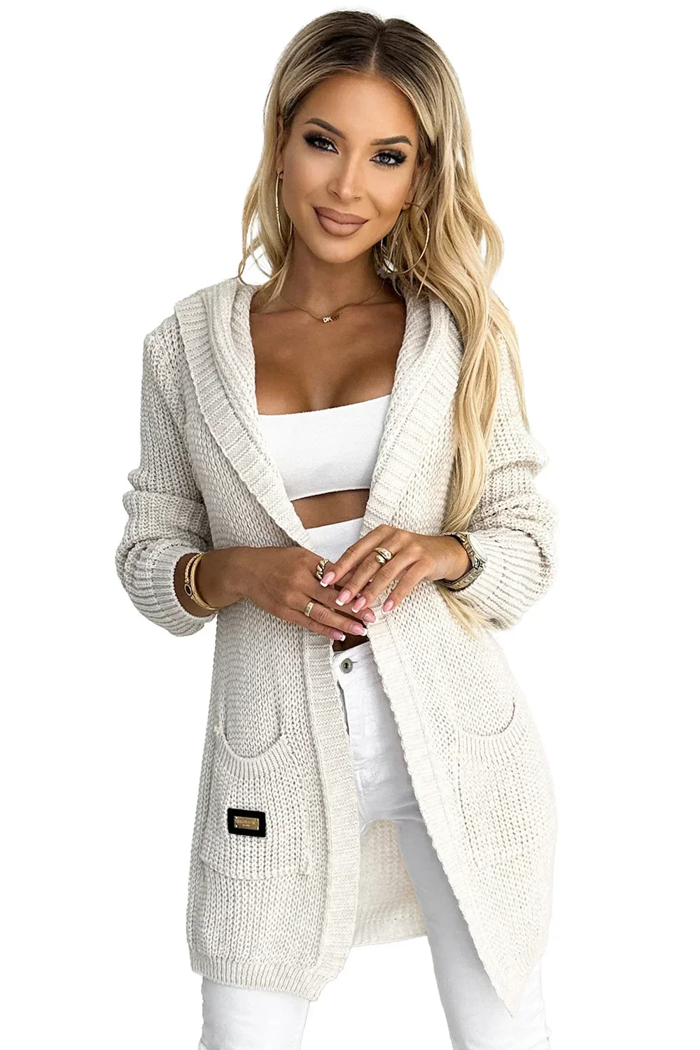 Béžový dámský kardigan přehoz přes oblečení s kapucí, kapsičkami a nášivkou model 18812067 - numoco basic