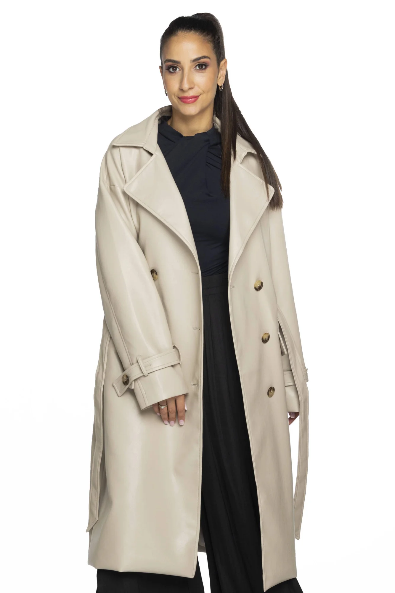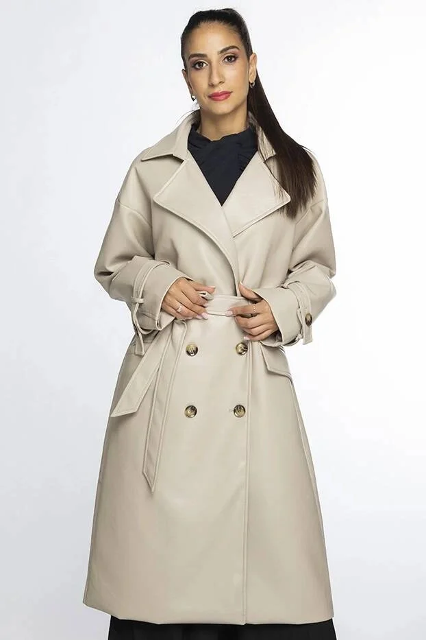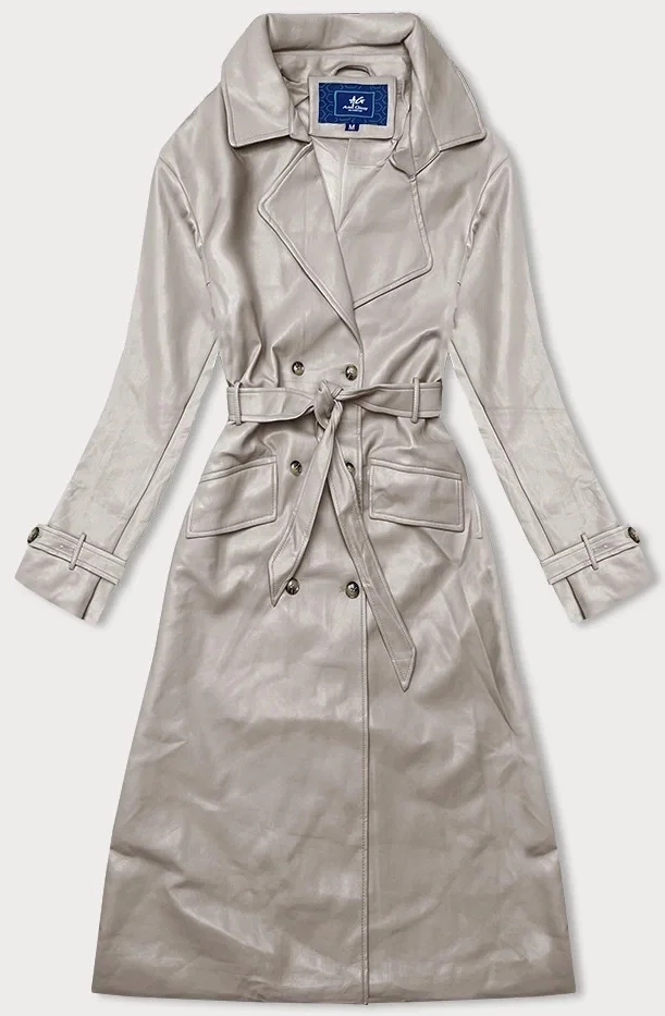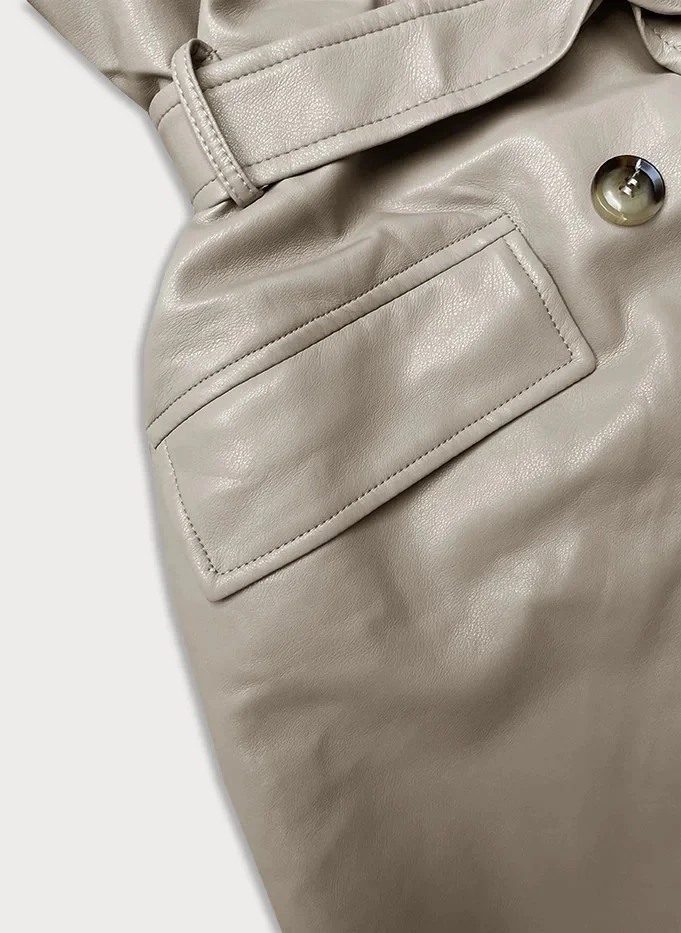 Béžový klasický dámský kabát z ekologické kůže model 19035464 - Ann Gissy