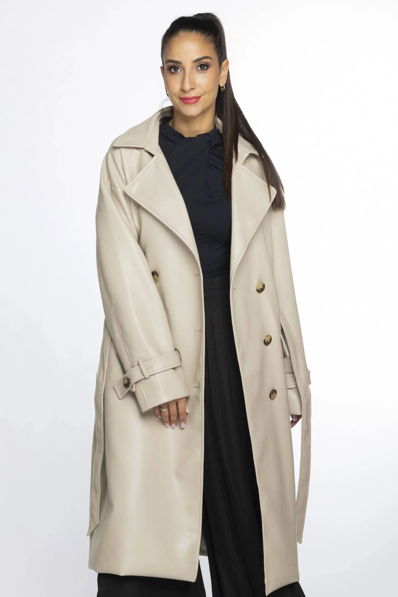Přidání recenze k Béžový klasický dámský kabát z ekologické kůže model 19035464 - Ann Gissy