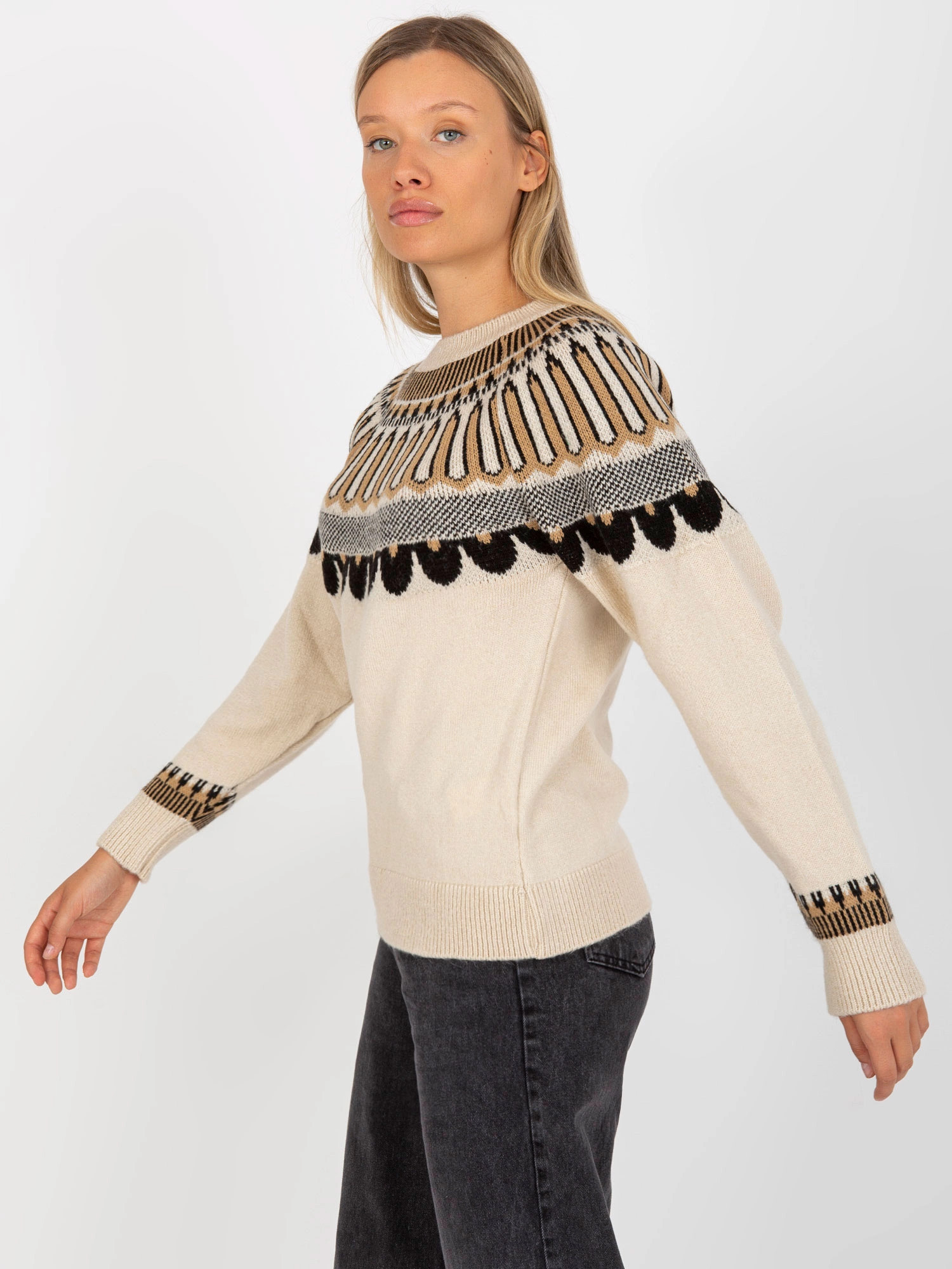Béžový vzorovaný svetr ve stylu casual (0342)