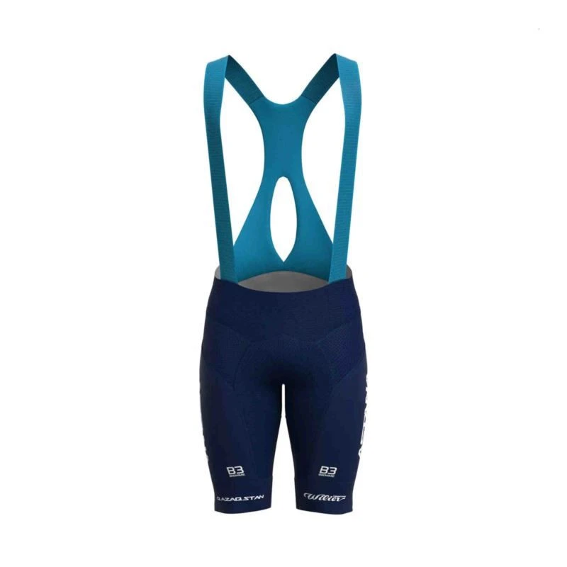 Cyklistické kraťasy Astana Qazaqstan Team 2024 jsou velmi lehké a pohodlné, s moderní panelovou strukturou, která snižuje hmotnost a zlepšuje aerodynamické a ergonomické vlastnosti. Lycra použitá při výrobě , která se přizpůsobuje siluetě cyklisty, je pružná a velmi prodyšná a udržuje svaly nohou na místě bez přílišného tlaku.