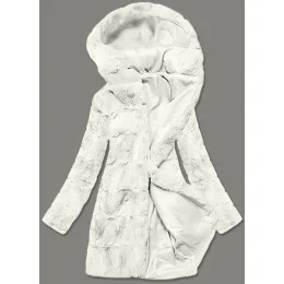 Bílá dámská bunda-kožíšek s kapucí (br9741-26)