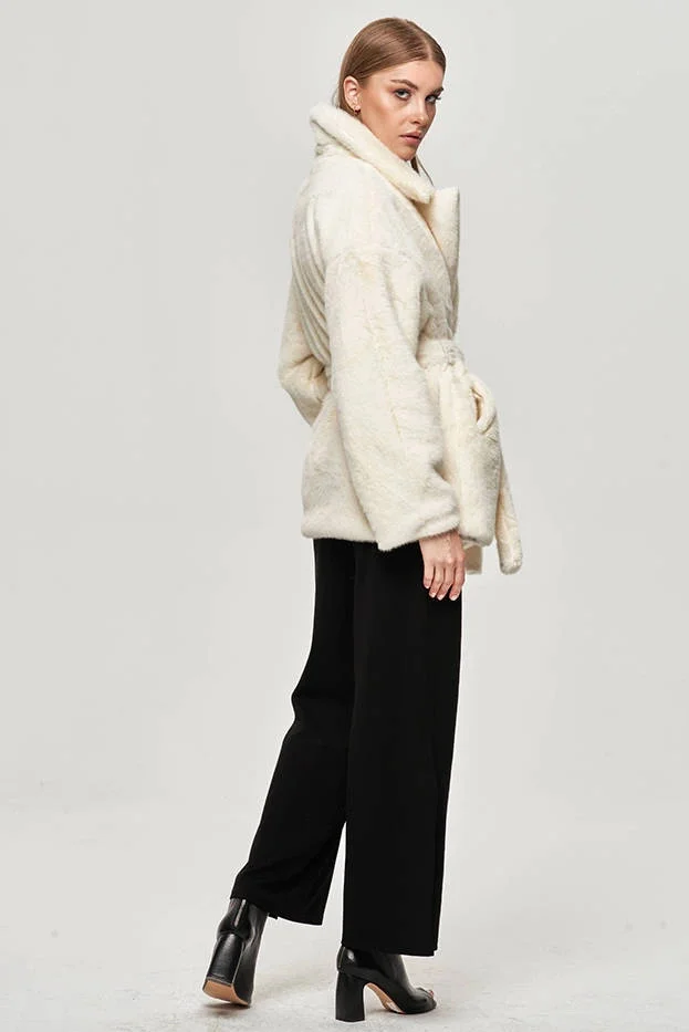 Přidání recenze k Bílá dámská bunda - kožíšek s límcem (GSQ2166)