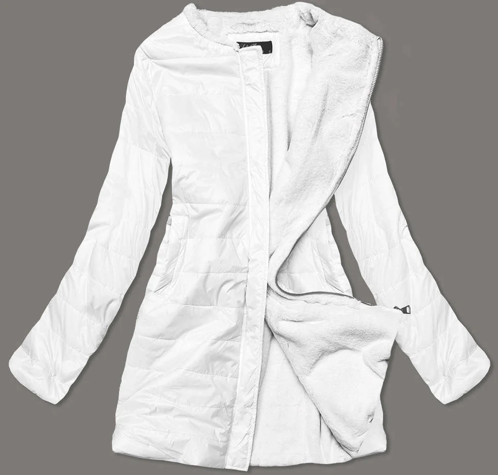 Bílá dámská bunda s kožíškem pro přechodné období model 15851131 - L&J studios