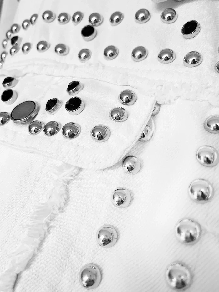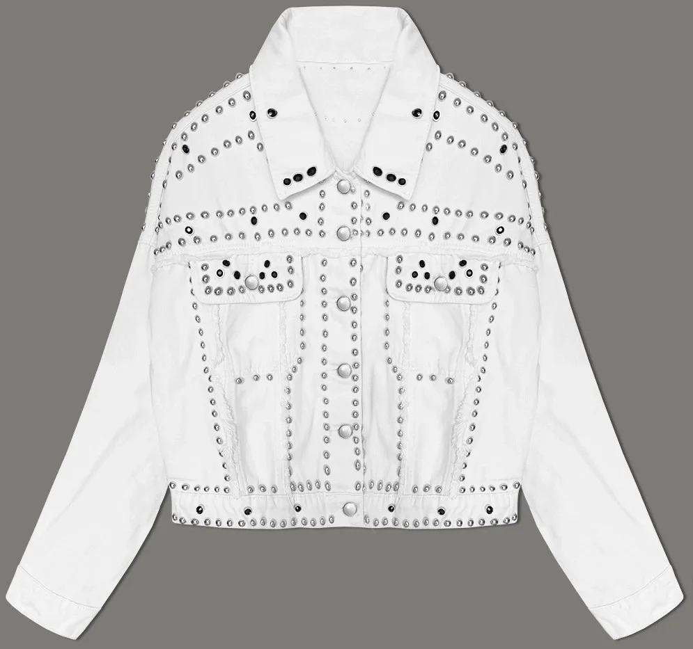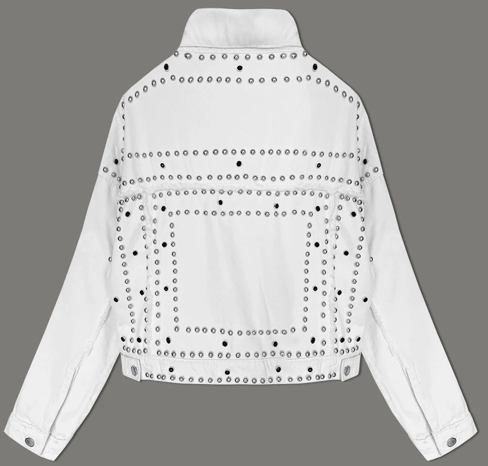 Bílá dámská džínová bunda s ozdobnými kamínky (M7010)