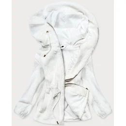 Bílá kožešinová dámská bunda s kapucí (BR9596-26)