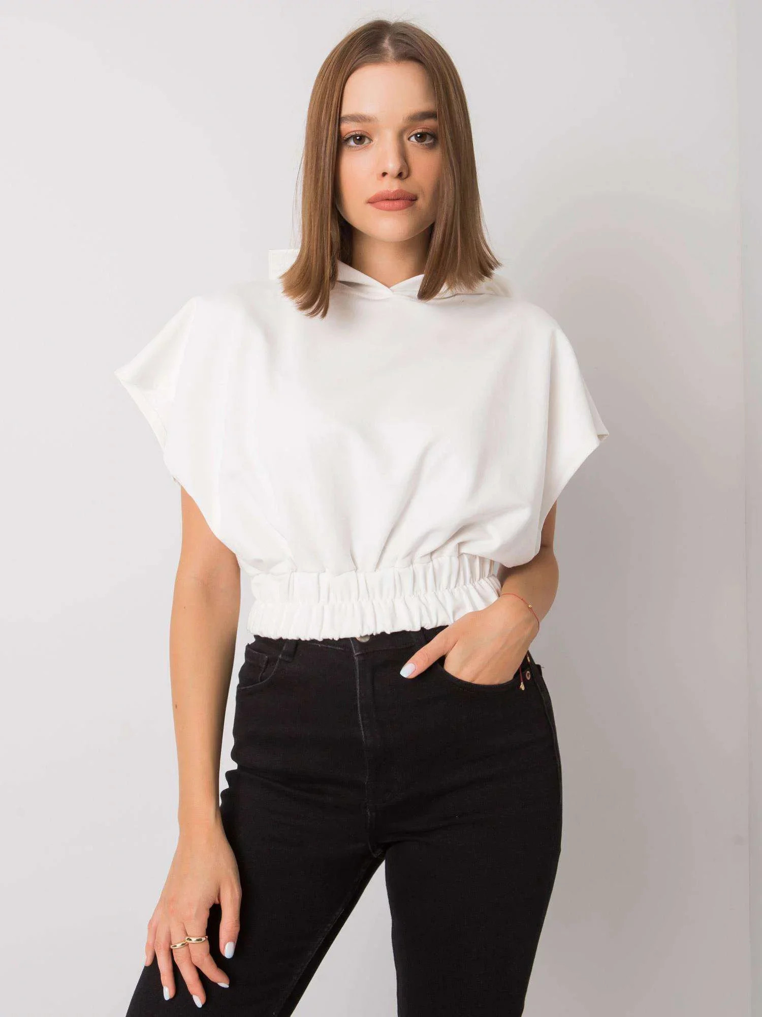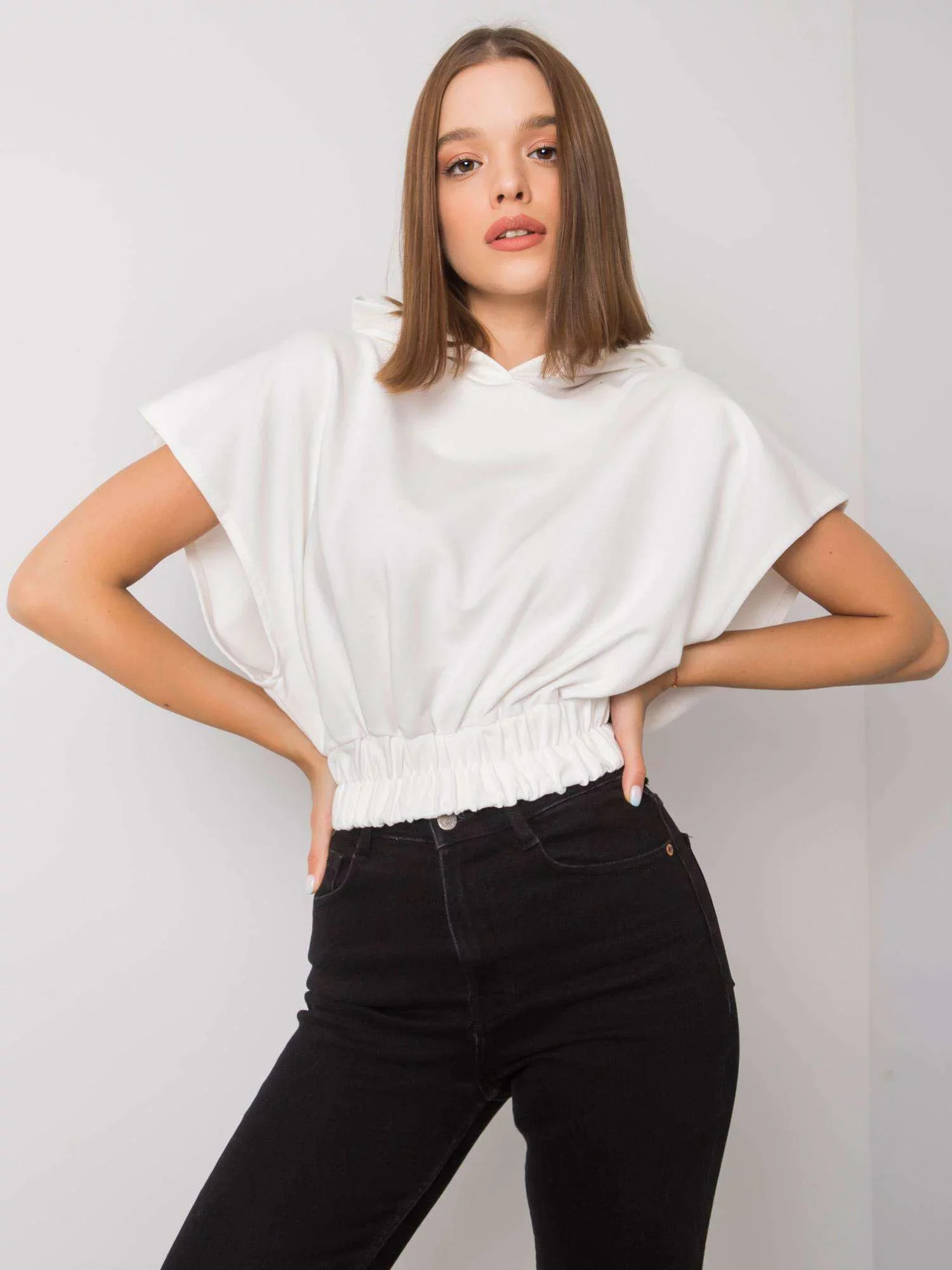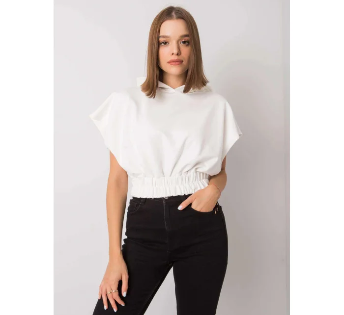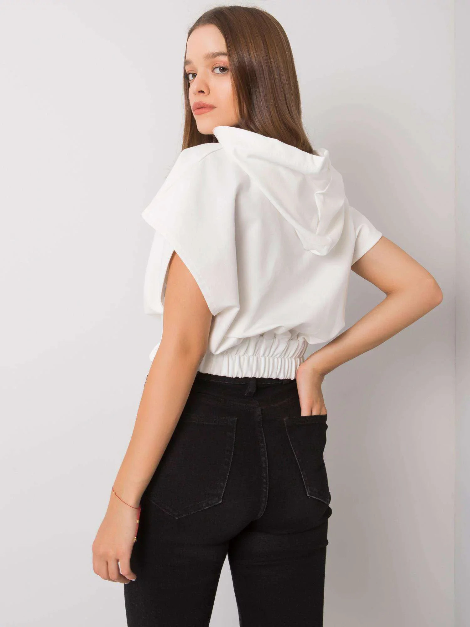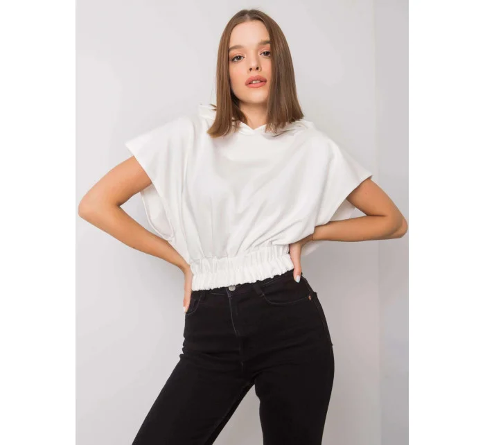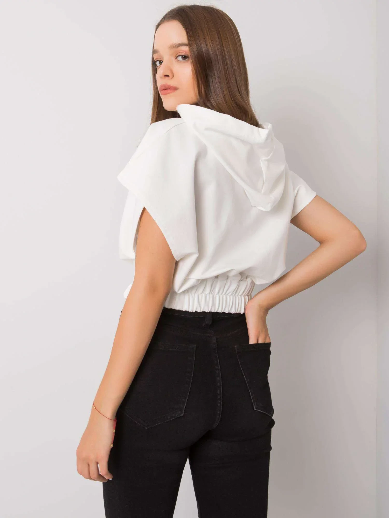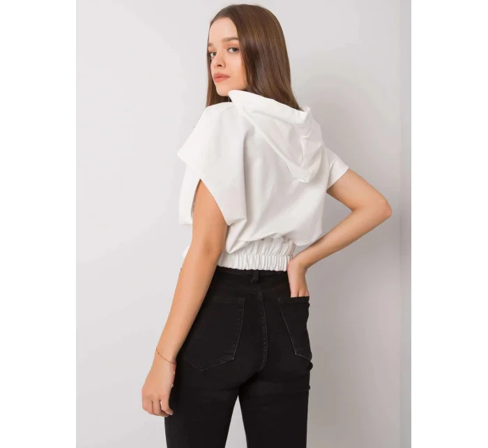 Krátká bílá tepláková mikina s kapucí (8B939-1)