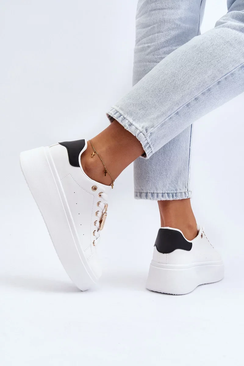 Dámská sportovní obuv je vyrobena z eko kůže. Namontované na platformě. Tento model je klasicky šněrovaný. Jsou perfektní jako každodenní obuv do práce nebo do školy. Pěnová vložka vám zajistí pohodlí. Parfémové zdobení na tkaničkách. Tento model by neměl chybět ve vašem šatníku! Při výběru velikosti se prosím řiďte tabulkou velikostí.