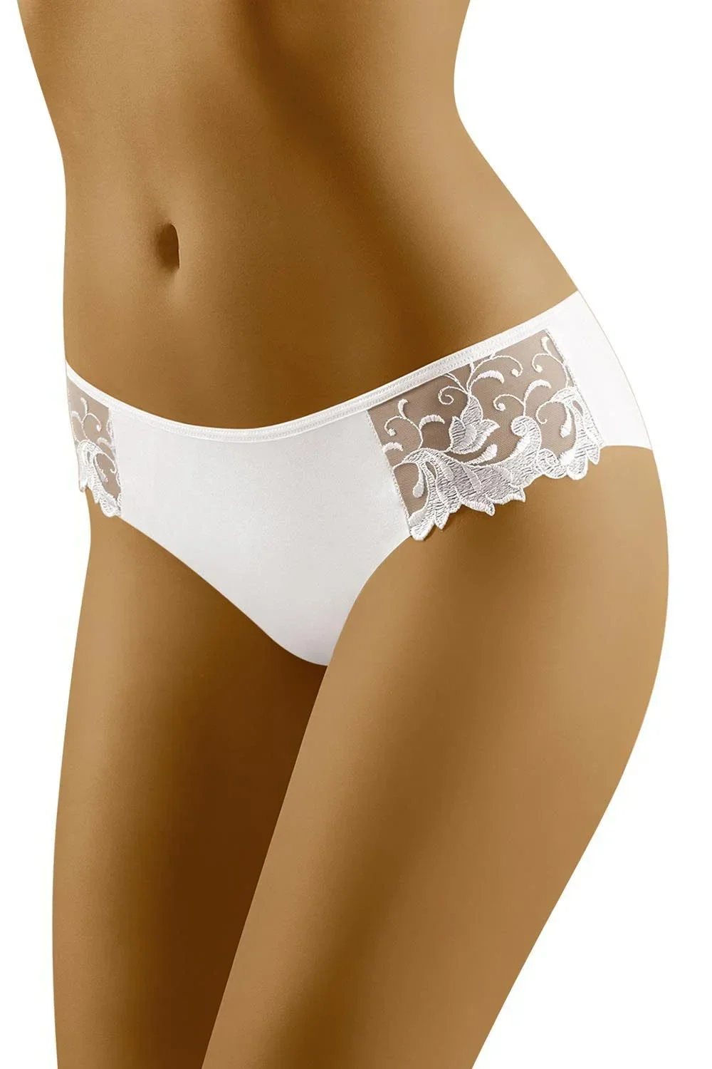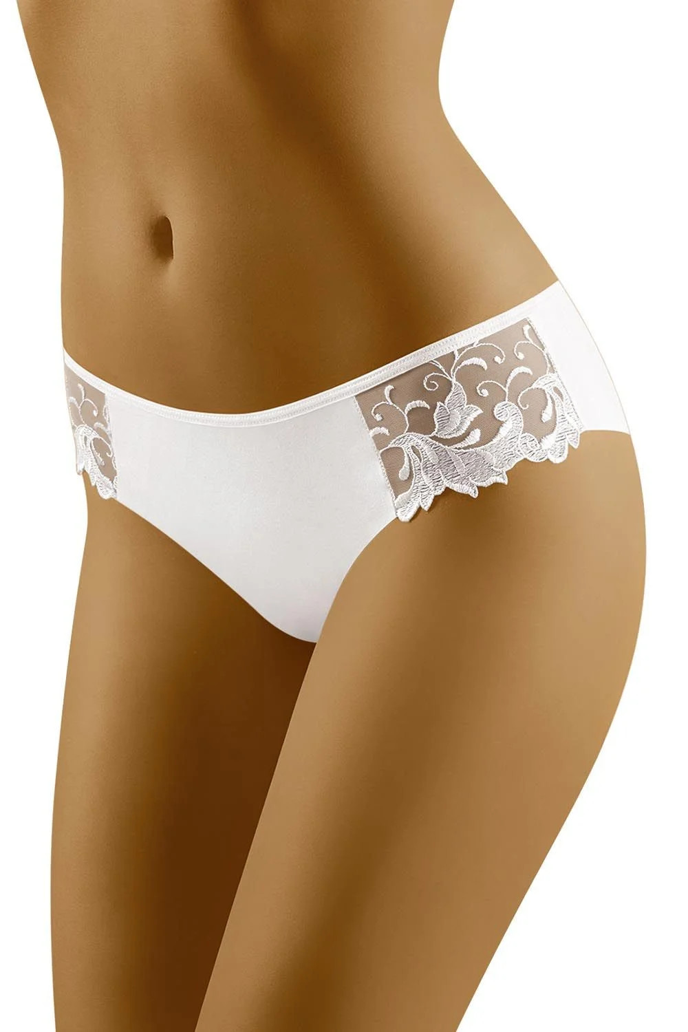 Pohodlné bavlněné kalhotky s elegantními krajkovými vsadkami na bocích. Velmi krásný, velmi ženský vzhled. Zadní i přední část hladká. 90 % bavlna, 7 % elastan, 3 % polyamid.