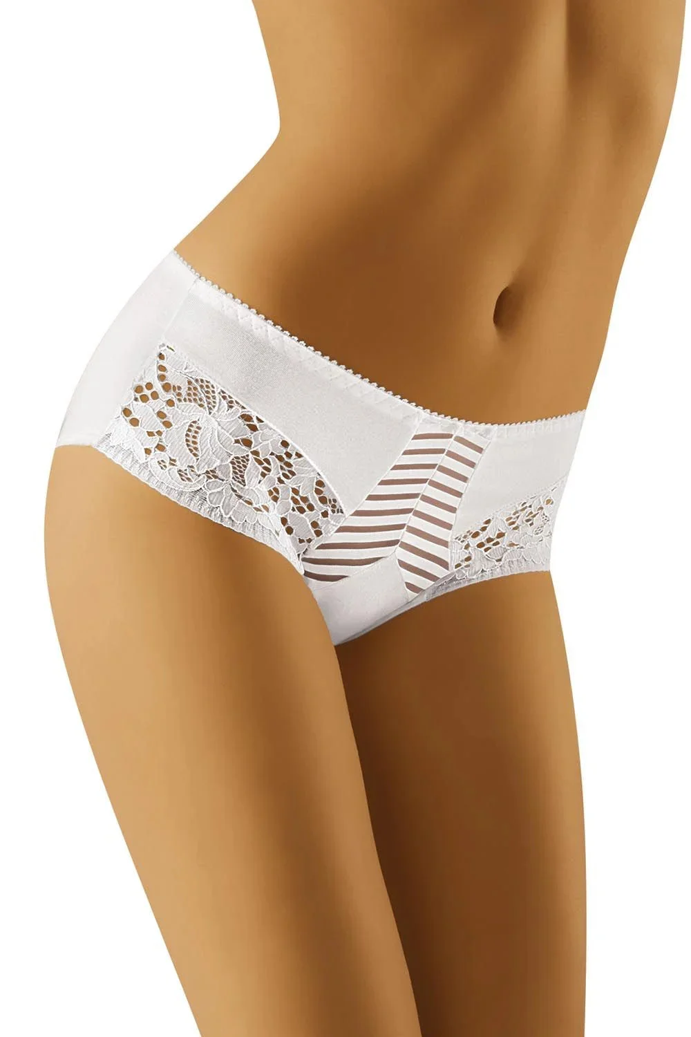 Bavlněné kalhotky vyššího střihu, zdobené krajkou kolem stehen, hladké, vzadu neprůhledné, elegantní a stylové. 90 % bavlna, 7 % elastan, 3 % polyamid.