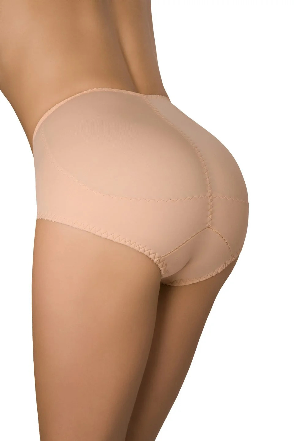 Mírně vyšší kalhotky, které profilují vzhled hýždí. Stahovací, elastická tkanina s profilovými vlastnostmi. Zajišťuje, že se dno zvedá a vypadá velmi dobře. Složení: 85 % polyamid, 15 % elastan.