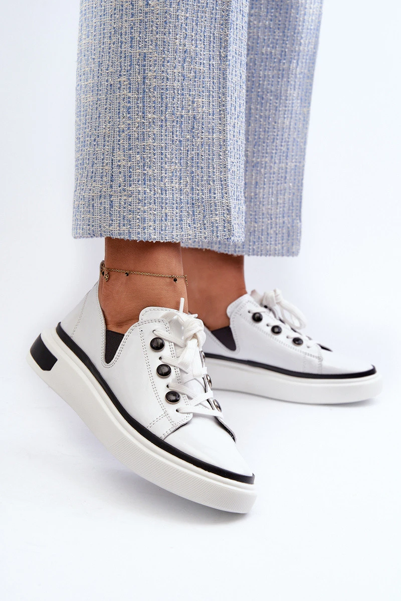 Bílé lakované dámské kožené tenisky D&A LR535