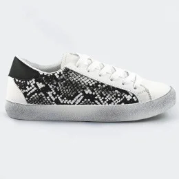 Bílo-černé dámské trampky se zvířecím motivem - had (6343)