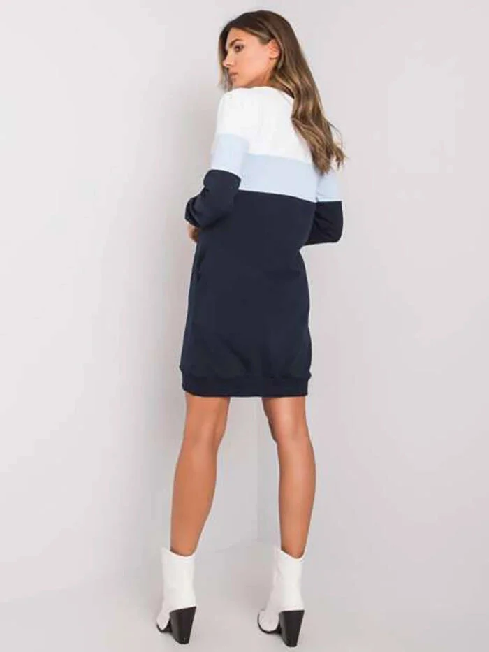 Přidání recenze k Bílo/světle modro/tmavě modrá trojbarevná dámská dlouhá mikina s kapsami (5869)