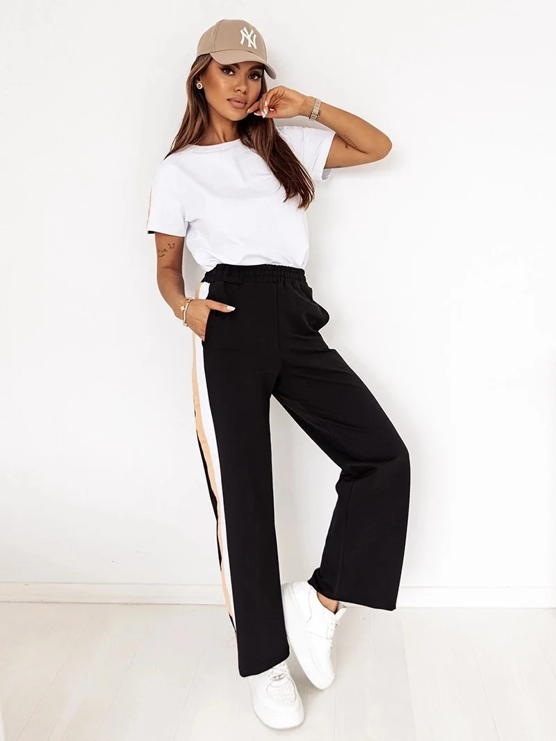 Komplet, který se skládá z trička a širokých kalhot.