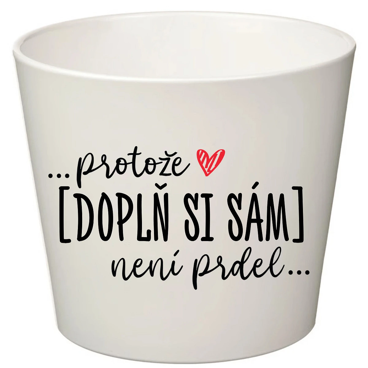 Hledáte originální dárek s humorem a osobním nápadem? Tento bílý keramický květináč s předdefinovaným motivem „… protože [doplň si sám] není prdel…“ si můžete upravit přesně podle sebe. Stačí doplnit vlastní slovo nebo krátký text a během chvíle vznikne vtipný a jedinečný kousek, který pobaví i potěší.