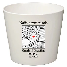 Na výběr máte 3 druhy map, takže si snadno zvolíte styl, který Vám bude nejvíce vyhovovat. Květináč je ideální jako připomínka místa prvního setkání, domova, svatby, narození dítěte, zásnub nebo jiné významné události.