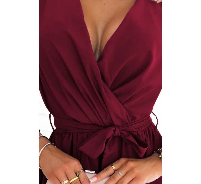 BINDY - Velmi žensky působící dámské šaty ve vínové bordó barvě s dekoltem 339-3