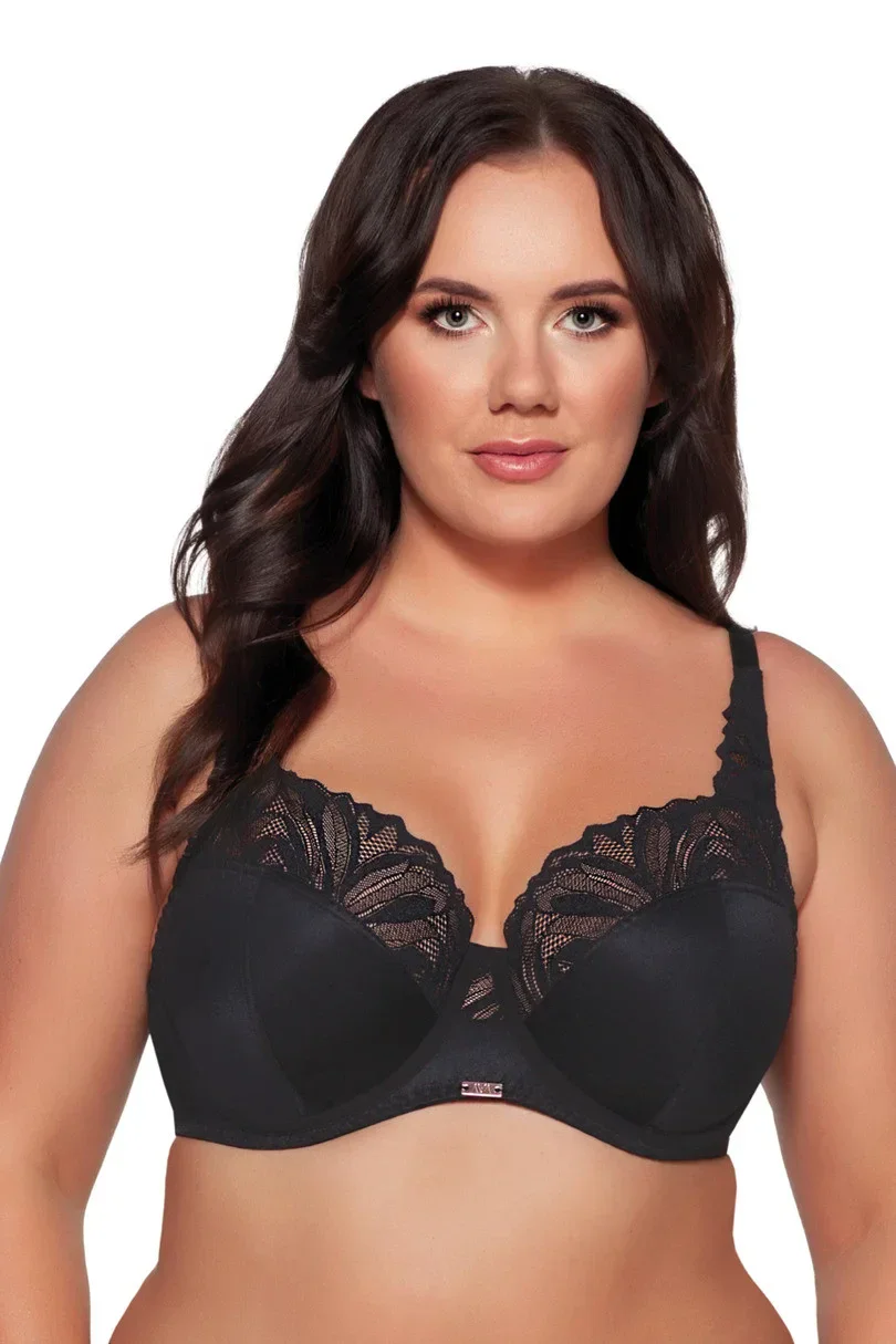 Měkká podprsenka, jejíž košíčky vyrobené z hladké kombinace simplexu a vkusné krajky stabilně podpírají ňadra a zároveň je shromažďují k sobě, takže dekolt je mimořádně svůdný a lákavý. Jednobarevný Yasemin oživují plakety s vyraženým logem umístěné na můstku a na sponě, které mu dodávají nenucenou eleganci.