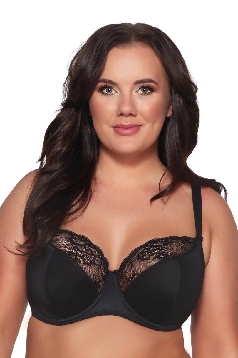 Hladká, elegantní podprsenka s vyztuženými košíčky, košíčky vyztužené zespodu příjemnou pěnou nadnášejí a podpírají poprsí a ladně ho tvarují ve výstřihu. Horní část košíčků zdobí stabilní květinová krajka, která koketně zakrývá horní část ňader a nechává to, co je skryté, na fantazii. Díky propracovanému designu podprsenka pevně drží na svém místě, zatímco široký obvod a ramínka zajišťují maximální pohodlí.