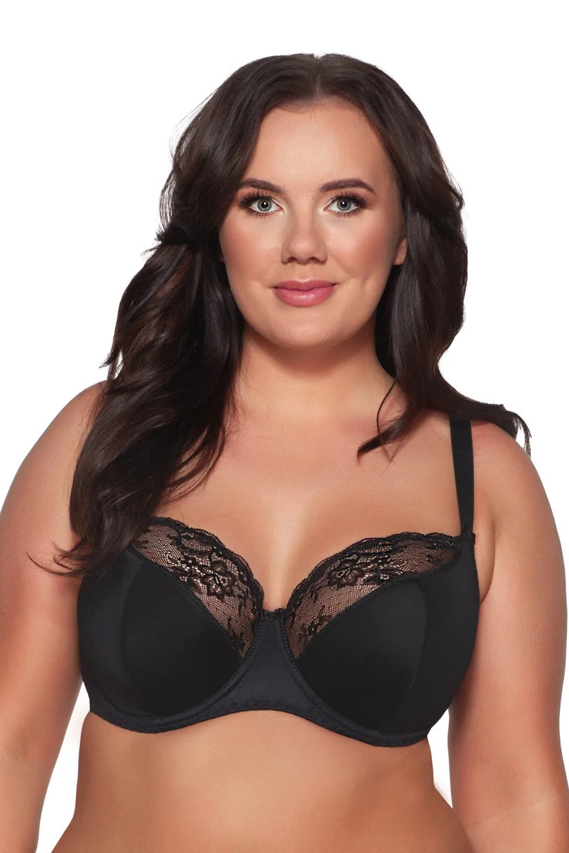 Hladká, elegantní podprsenka s vyztuženými košíčky, košíčky vyztužené zespodu příjemnou pěnou nadnášejí a podpírají poprsí a ladně ho tvarují ve výstřihu. Horní část košíčků zdobí stabilní květinová krajka, která koketně zakrývá horní část ňader a nechává to, co je skryté, na fantazii. Díky propracovanému designu podprsenka pevně drží na svém místě, zatímco široký obvod a ramínka zajišťují maximální pohodlí.