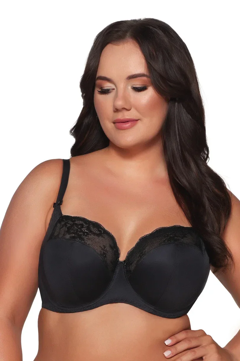 Měkká podprsenka, osvědčená konstrukce 1130 pro maximální podporu poprsí a sběr. Hladké košíčky z kombinace pevného úpletu a krajky zakončené koketními mašličkami přirozeně tvarují poprsí a mírně ho nadnášejí. Boční panel použitý ve spolehlivém designu pevně shromažďuje prsa od podpaží směrem k sobě, takže výstřih vypadá velmi svůdně.