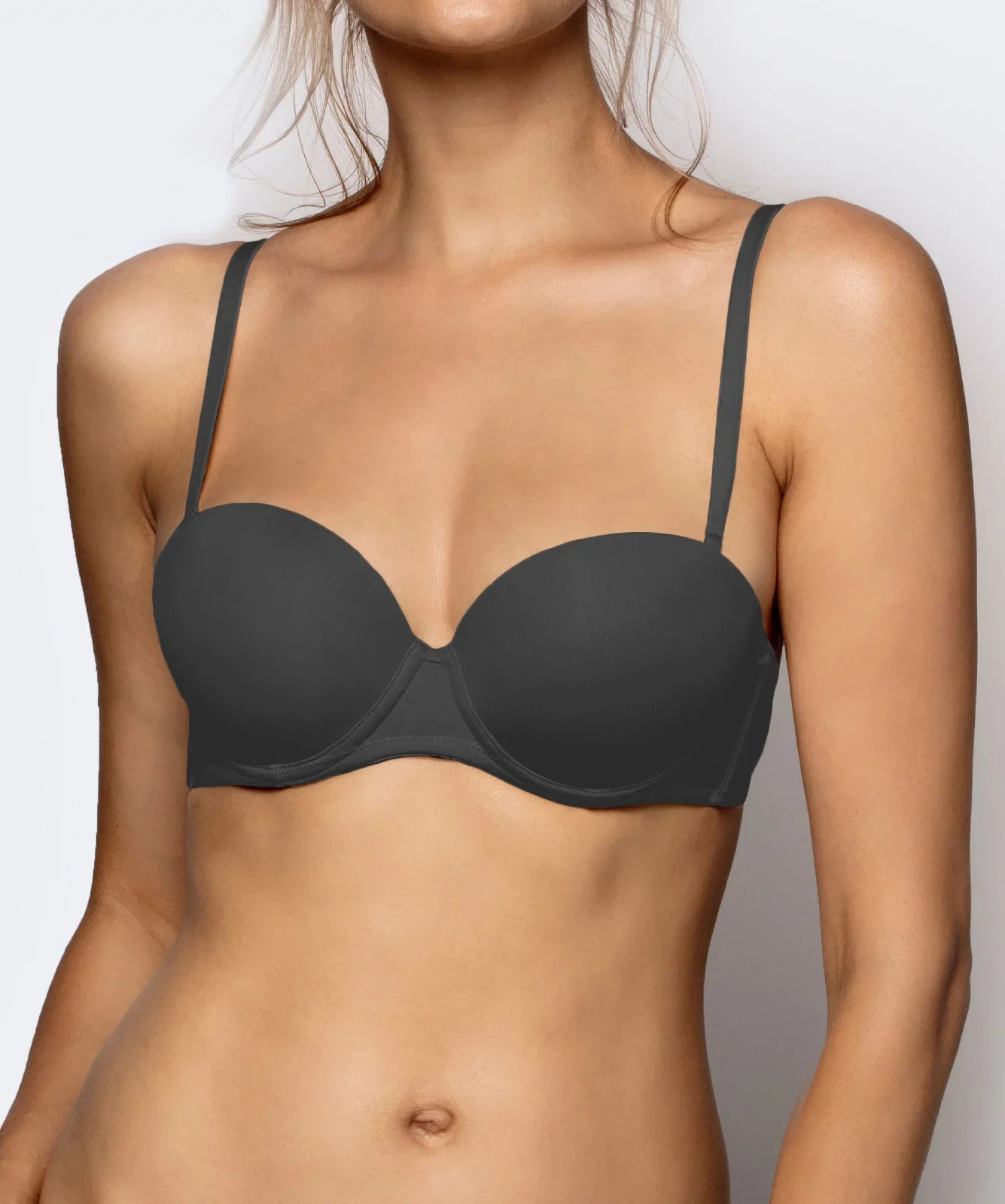Biustonosz damski ma fason balkonetki. Jest tutaj opcja wyjmowania wkładek z kieszonek wewnątrz miseczek oraz odpinania ramiączek. Tym samym biustonosz świetnie nadaje się do wieczorowych kreacji odsłaniających dekolt. Wykonany jest z lekkiej, miękkiej i przyjemnej w dotyku mikrofibry, która doskonale wchłania wilgoć i przepuszcza powietrze.