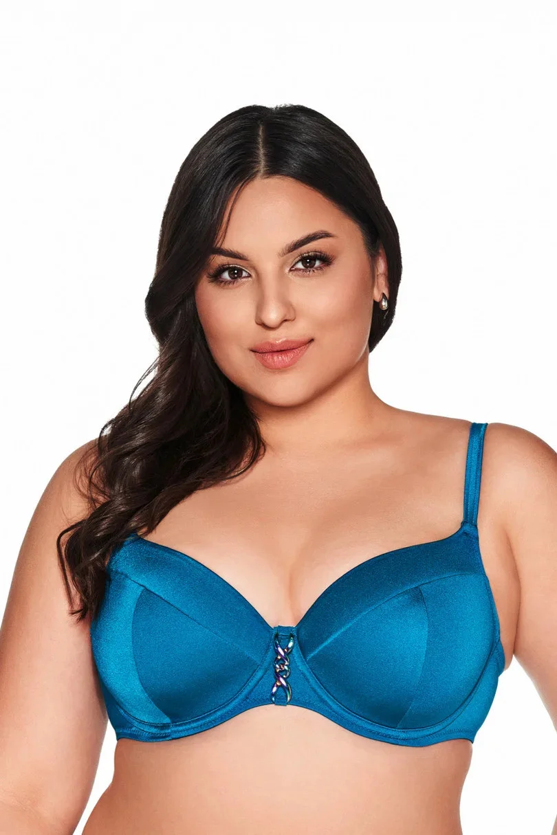 <p> </p> <p><span style="font-family: verdana, geneva, sans-serif;">Odkryj szyk i elegancję z naszym biustonoszem kąpielowym w głębokim kolorze azuru, który przywodzi na myśl piękno błękitnej laguny. Ten niezwykle stylowy biustonosz został zaprojektowany, aby zapewnić idealne podtrzymanie i doskonały wygląd. Usztywnione miseczki precyzyjnie zbierają piersi do środka, tworząc oszałamiający dekolt, który przyciąga spojrzenia.</span></p> <p><span style="font-family: verdana, geneva, sans-serif;">Unikalnym akcentem jest szeroka ozdoba w kolorze hologramu umieszczona między miseczkami, dodająca biustonoszowi wyjątkowego charakteru. Dzięki niej, biustonosz nabiera niepowtarzalnego blasku, wyróżniając się spośród innych. To połączenie klasycznego piękna z nowoczesnym detalem sprawia, że nasz biustonosz kąpielowy stanie się Twoim ulubionym elementem letniej garderoby.</span></p> <p style="margin-bottom: 0cm;"> </p> <p style="margin-bottom: 0cm;"><span style="font-family: verdana, geneva, sans-serif;">Skład surowcowy : 80% Poliamid, 20% Elastan </span></p>
