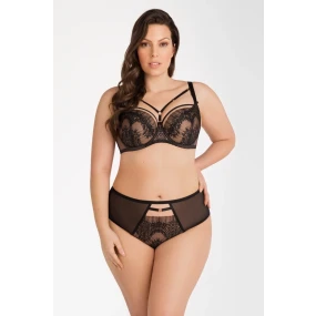 Biustonosz miękki przeznaczony dla kobiet ze średnim, dużym oraz bardzo dużym biustem. Zapewnia efekt bardzo mocnego uniesienia i zebrania biustu do środka, 4-częściowe miski wykonane z tiulu stabilnego, kryjącej dzianiny typu simplex oraz haftu. Kryjąca ukośna wstawka zasłania sutki i optycznie wysmukla sylwetkę. Górna krawędź miski przechodzi płynnie do ramiączka powodując lepsze podtrzymanie biustu. Dla zwiększenia komfortu użytkowania biustonosz na plecach wykończony szeroką taśmą elastyczną, a pachy obszyte miękkimi lamówkami. Fiszbiny boczne zapobiegające zwijaniu się materiału, w zależności od rozmiaru dwu lub trzyrzędowa haftka z trójstopniową regulacją obwodu, nieodpinane, regulowane ramiączka w trzech szerokościach. Metalowe elementy w kolorze różowego złota (nie zawierają niklu).EAN čárové kódy zboží jsou: