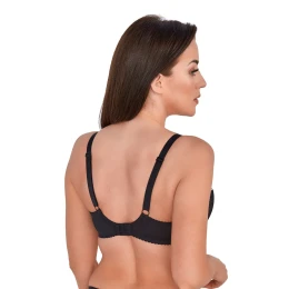 Měkká podprsenka s kosticemi, konstrukce s bočním panelem, díky kterému máme jistotu, že poprsí bude dokonale shrnuté dovnitř a krásně vytvarované. Košíčky z vyztužené látky - neprůhledné, horní část zakončená černým plochým páskem. Lem je vyroben z hladké tkaniny s přídavkem lycry. Ramínka jsou nastavitelná a jejich šířka je přizpůsobena velikosti poprsí, takže netlačí a zvyšují pohodlí podprsenky CLARA.