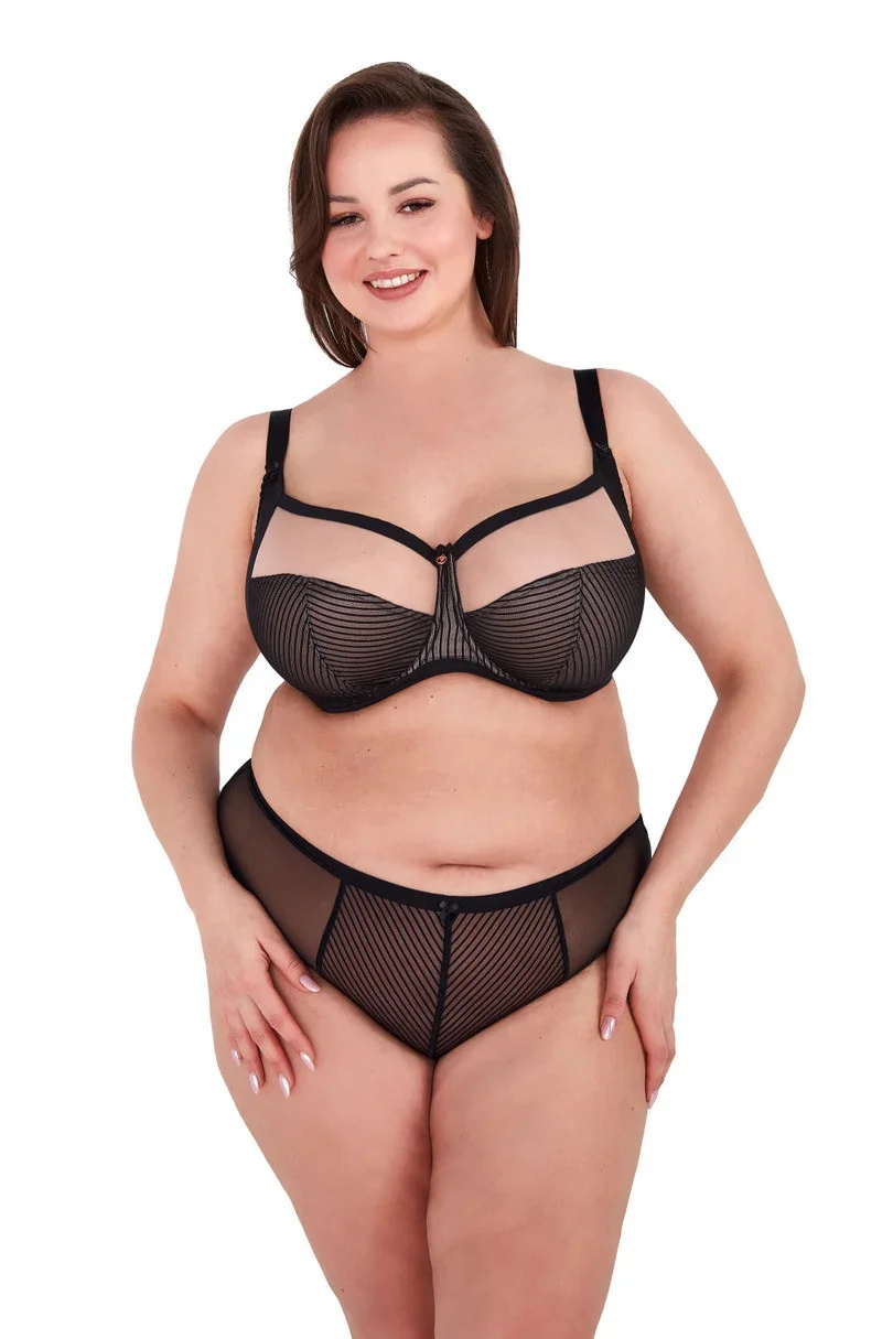 Měkká podprsenka s kosticemi, konstrukce s bočním panelem, díky kterému máme jistotu, že poprsí bude dokonale shrnuté dovnitř a krásně vytvarované. Košíčky z vyztužené látky - neprůhledné, horní část zakončená černým plochým páskem. Lem je vyroben z hladké tkaniny s přídavkem lycry. Ramínka jsou nastavitelná a jejich šířka je přizpůsobena velikosti poprsí, takže netlačí a zvyšují pohodlí podprsenky CLARA.