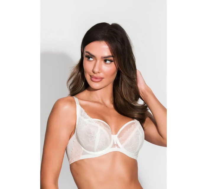 Wyjątkowość tego modelu podkreśla finezyjne wysunięcie koronki poza miseczkę, co tworzy piękny dekolt oraz dodaje mu subtelnego uroku.Konstrukcja miękkich miseczek zapewnia naturalne dopasowanie do kształtu biustu, jednocześnie oferując komfort noszenia przez cały dzień. Wykorzystanie wysokiej jakości materiałów gwarantuje trwało