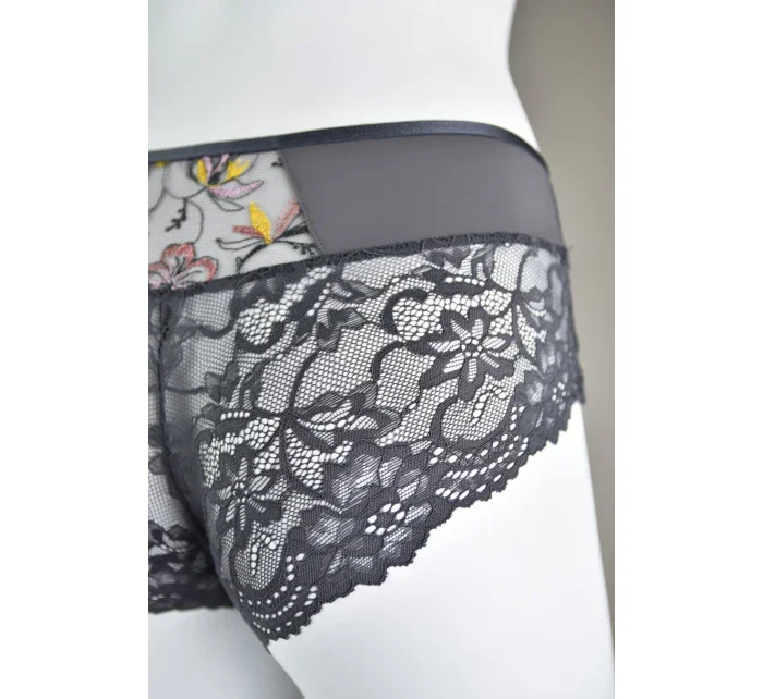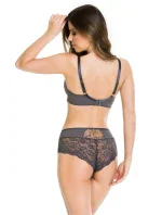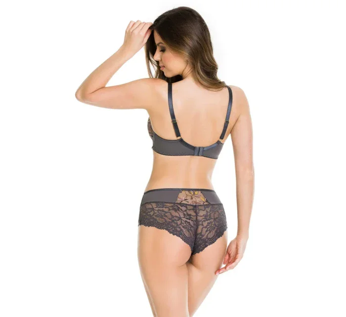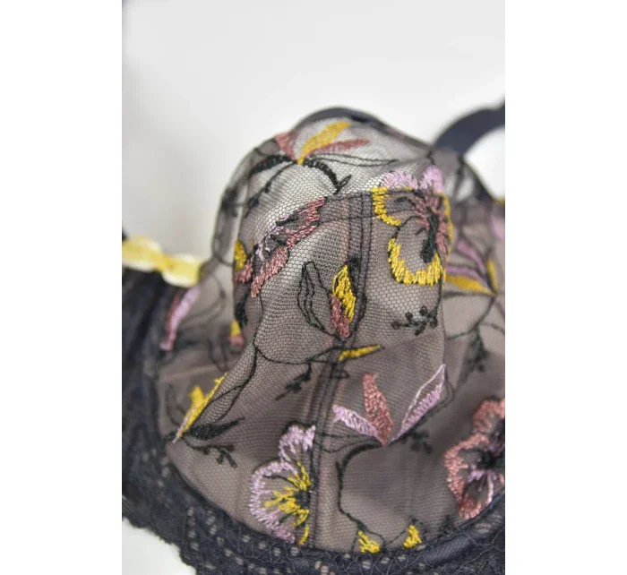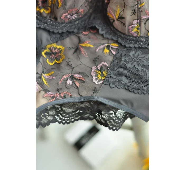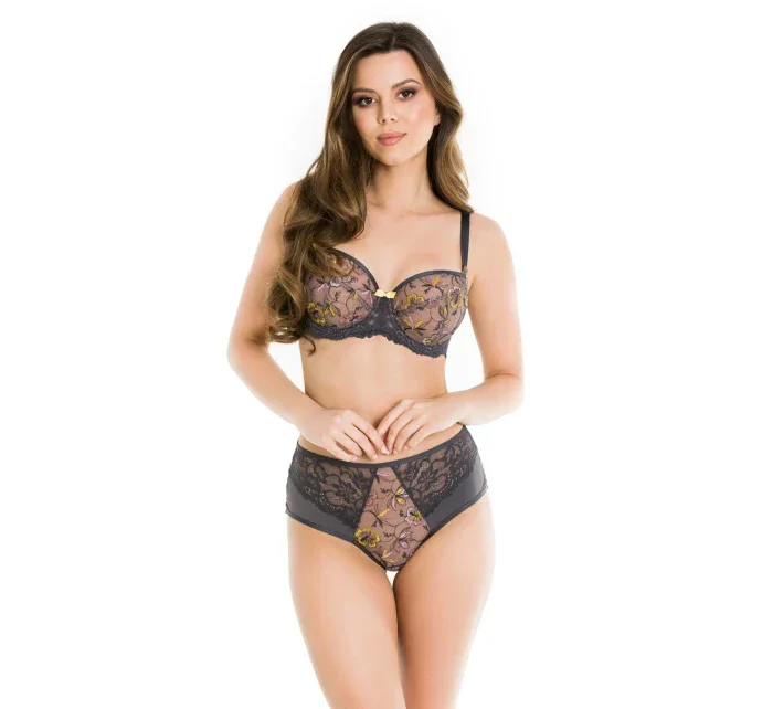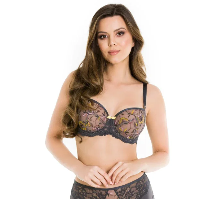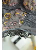 <p>Biustonosz miękki z fiszbinami.</p> <p>Miseczki z beżowej siatki, na którą naszyty jest wzorzysty plen-motyw kwiatowy na grafitowym podkładzie.</p> <p>Boczki z mikrofibry-wzmocnione fiszbiną, grafitowe ramiączka, bawet z koronki, środek zdobi zółta kokardka.</p> <p>Pewna i sprawdzona konstrukcja z modelu Deziro dedykowana dla średnichi dużych biustów.</p> <p>Skład surowcowy: 85%Poliamid, 10% Elastan, 5%Poliester.</p> <p> </p>