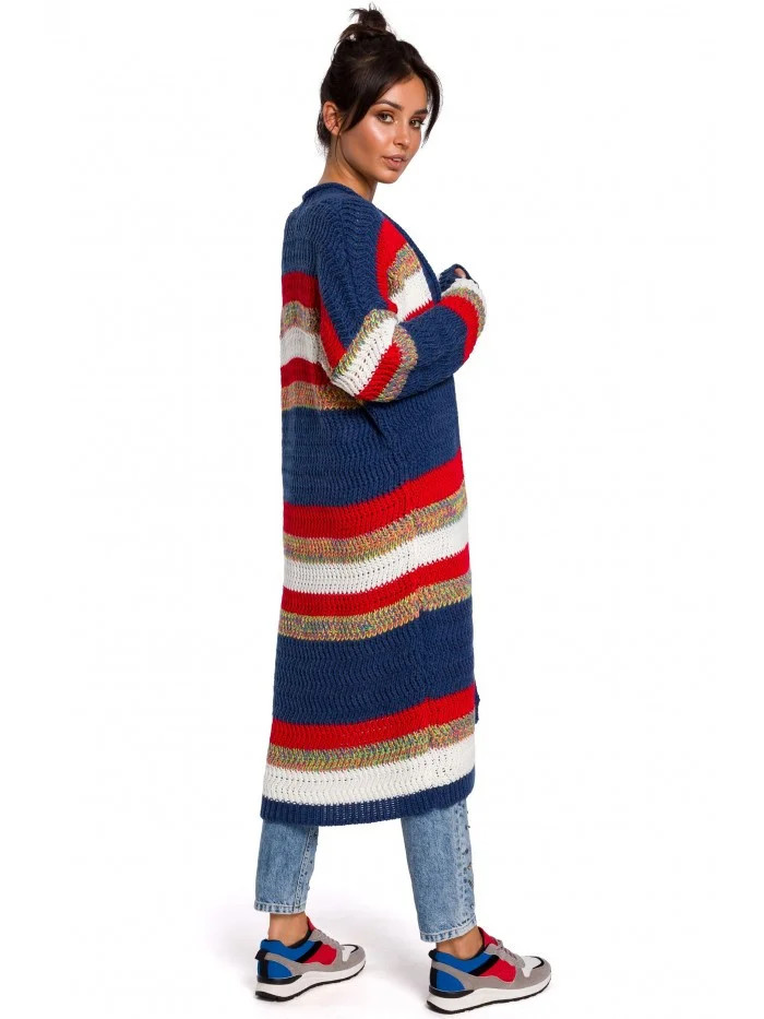 Dámský dlouhá svetr BK036 model 4 Tmavě modro červený - BeWear