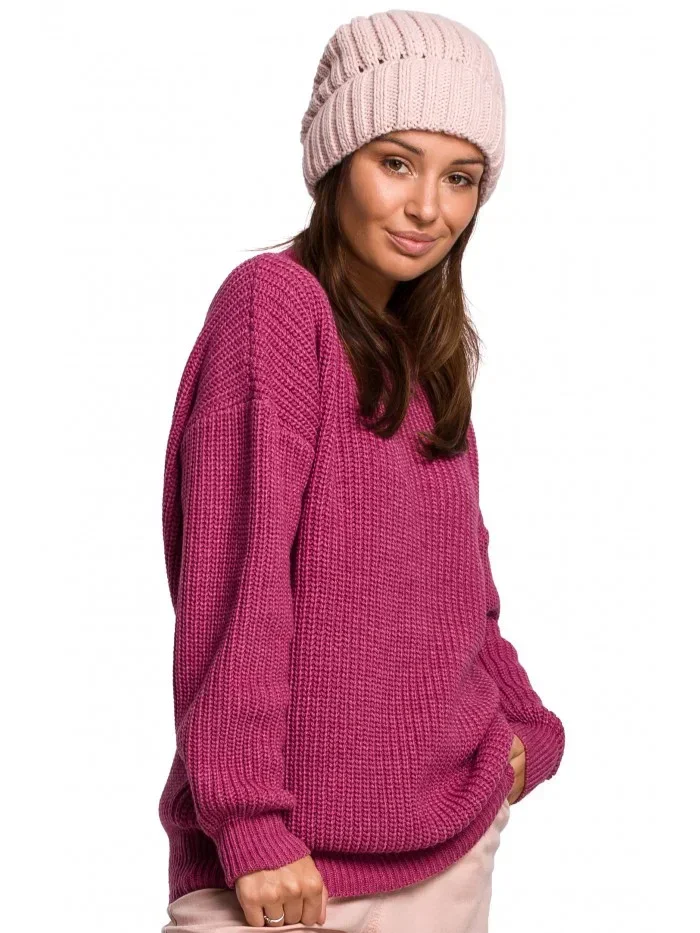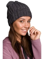 Dámská zimní čepice s vlnou v kočičím střihu z žebrovaného úpletu K419 béžová