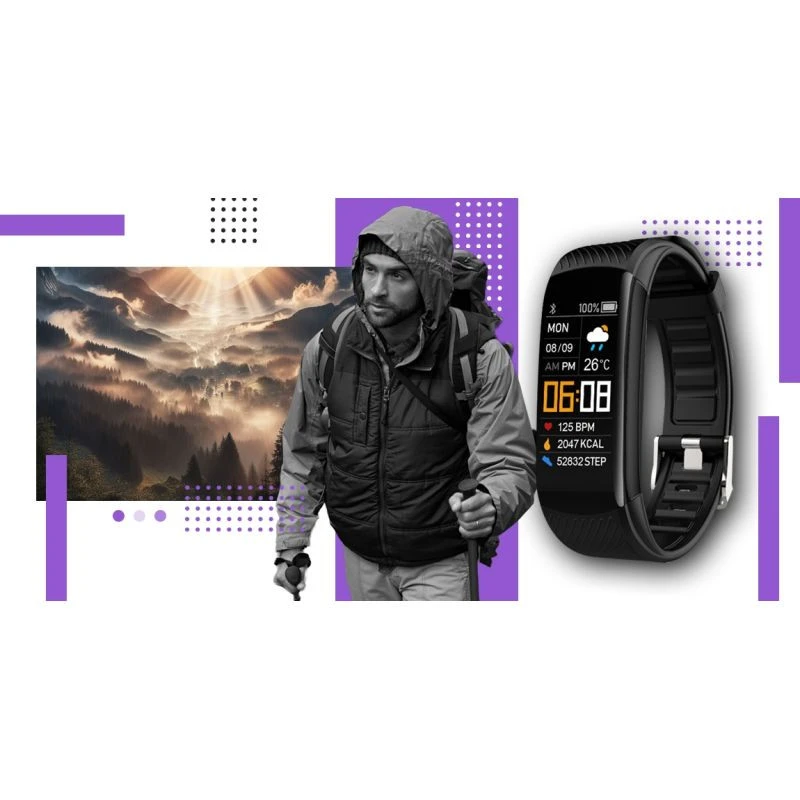 The Giewont GW200-3 smartwatch in black and purple is a combination of sporty energy and modern elegance in a uniquely refined form.The smartwatch comes with two straps, black and purple.Its dynamic design emphasises the character of the active user, while giving the device a touch of class.The slim design, the intense colours and the carefully finished envelope form a coherent whole that catches the eye both during training and in everyday situations.The large and easy-to-read screen, despite the slim design, provides comfortable operation and clarity of information, while the capacious battery allows you to enjoy long operation without frequent charging.The smartwatch offers a set of functions to support health and activity, such as heart rate monitoring, sleep quality analysis and monitoring of daily steps and calories burned.It is a personal assistant that helps you take care of your fitness and balance every day.Thanks to the stable Bluetooth connectivity, you can conveniently receive